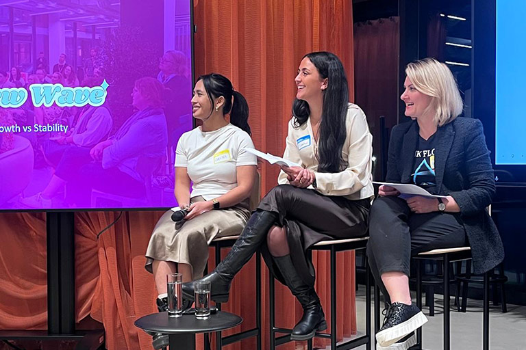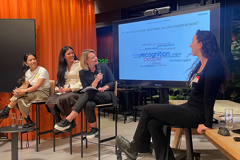 The launch discussion, “Growth vs. Stability in the Workplace,” brought together a room full of energy, curiosity and optimism. Guests including Stephen Drew (Architecture Social), Riku Rusanen (Nokia), and Chloe Farrell (Gensler) shared thoughtful insights on balancing ambition with recognition and the importance of purpose and connection in design.